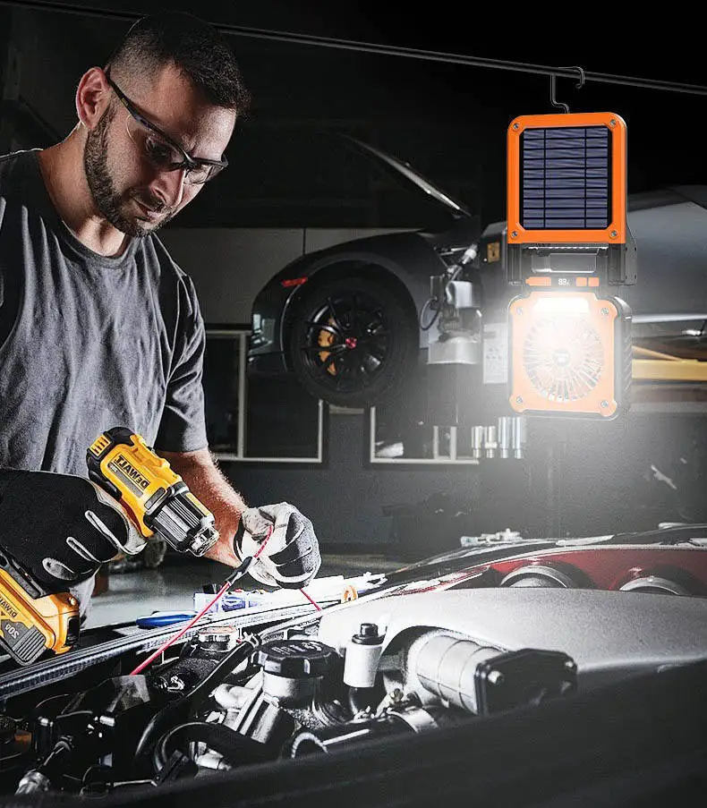 Answer: There is a newly launched solar camping lamp with a fan. Do you want to test some samples? This is our new best-selling lamp in the market. Please inquire for more details!